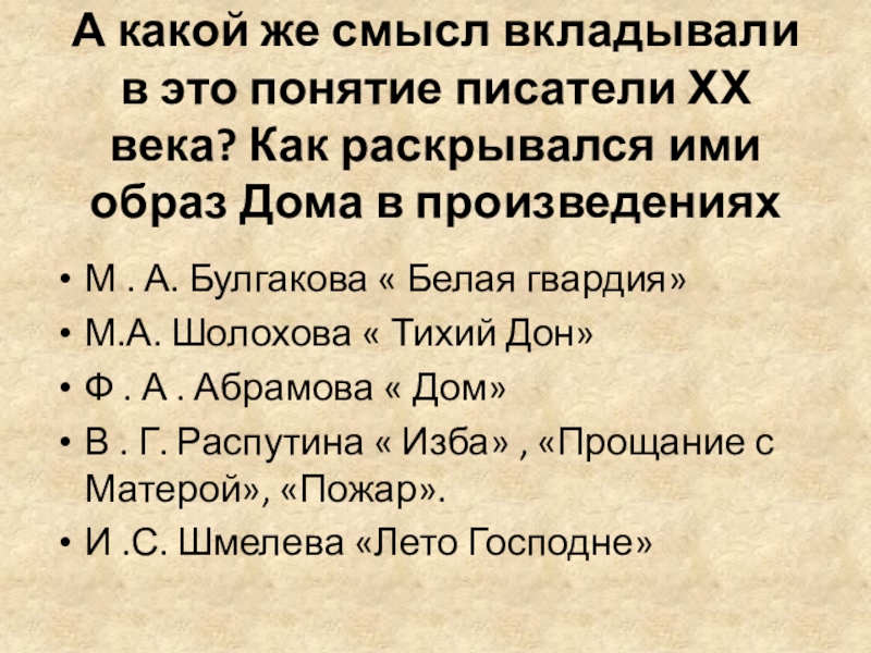 Слайд 1Мотив Дома в творчестве русских писателей xx века