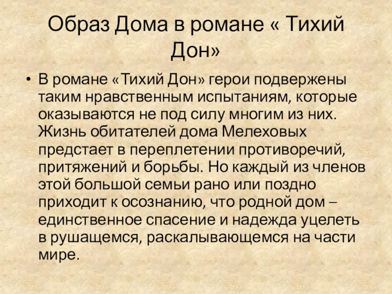 Слайд 7Образ Дома в романе « Тихий Дон»