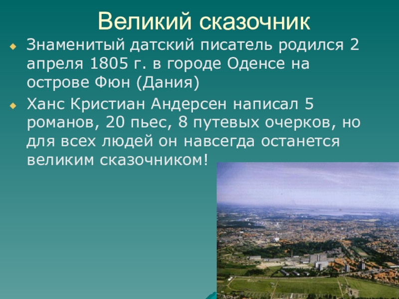 Знаменитый датский писатель родился 2 апреля 1805 г. в городе
