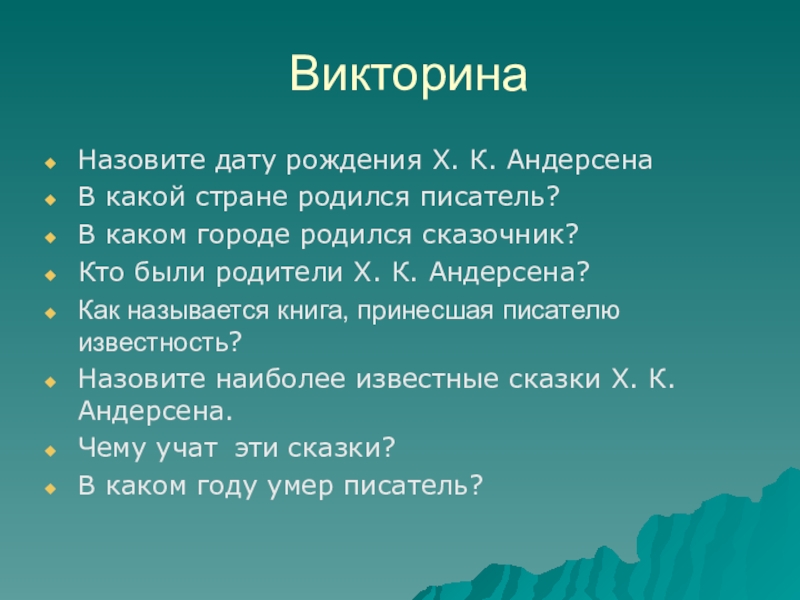 Назовите дату рождения Х. К. Андерсена