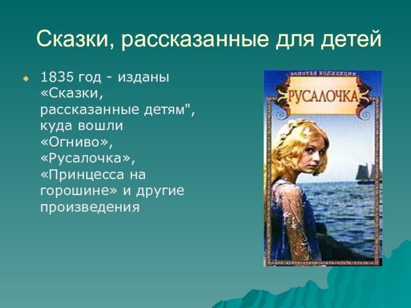 1835 год - изданы «Сказки, рассказанные детям", куда