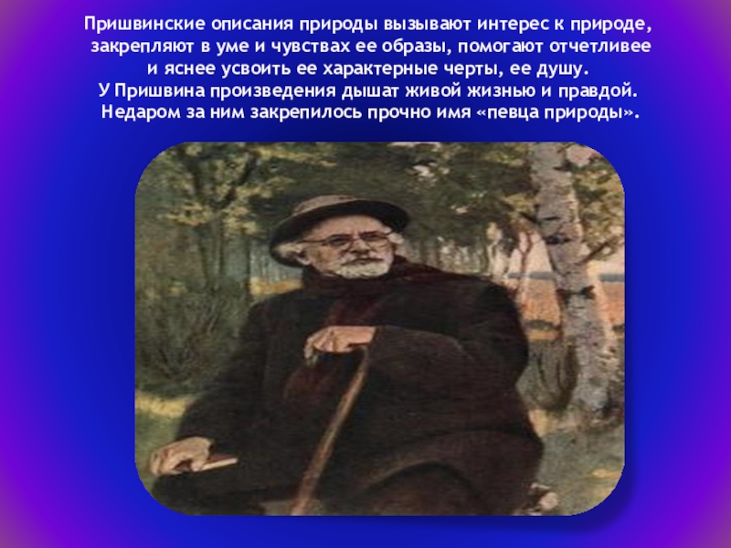Слайд 5Пришвинские описания природы вызывают интерес к природе,