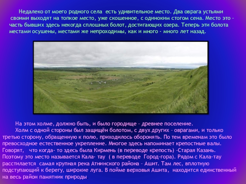 Слайд 9 Недалеко от моего родного села есть удивительное место.