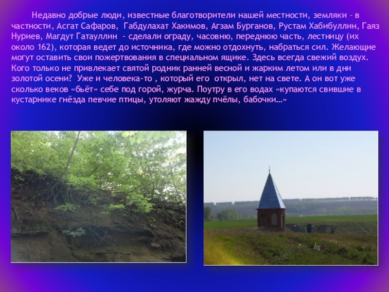 Слайд 15 Недавно добрые люди, известные благотворители нашей местности,