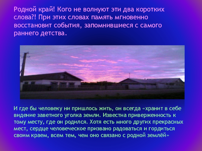 Слайд 8Родной край! Кого не волнуют эти два коротких слова?! При этих