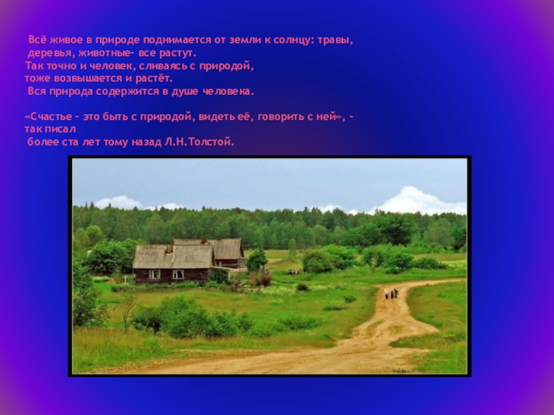Слайд 2 Всё живое в природе поднимается от земли к солнцу: травы,