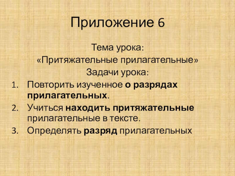 выявить пробелы первичного осмысления, закрепить в памяти учащихся полученные сведения о притяжательных прилагательных;