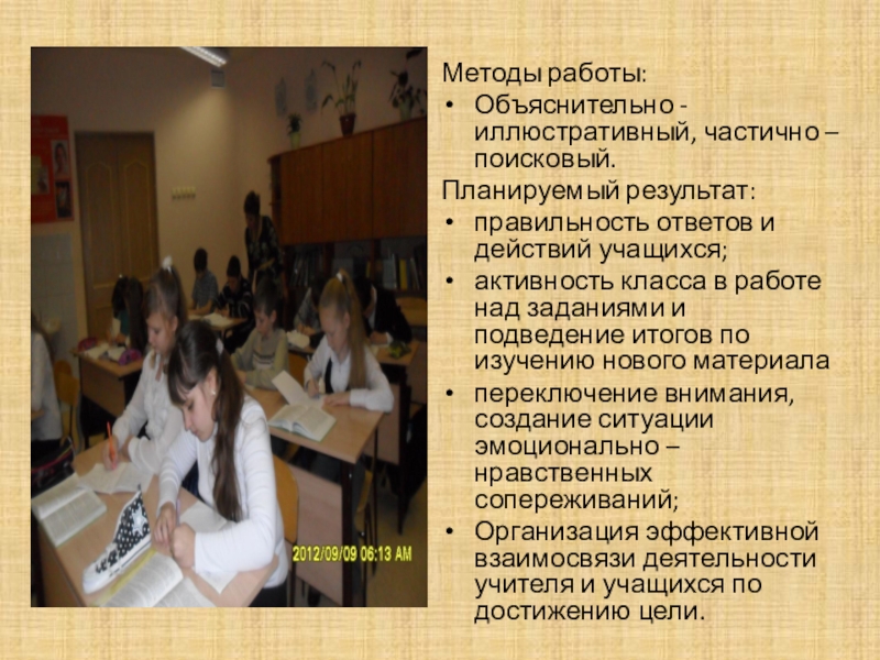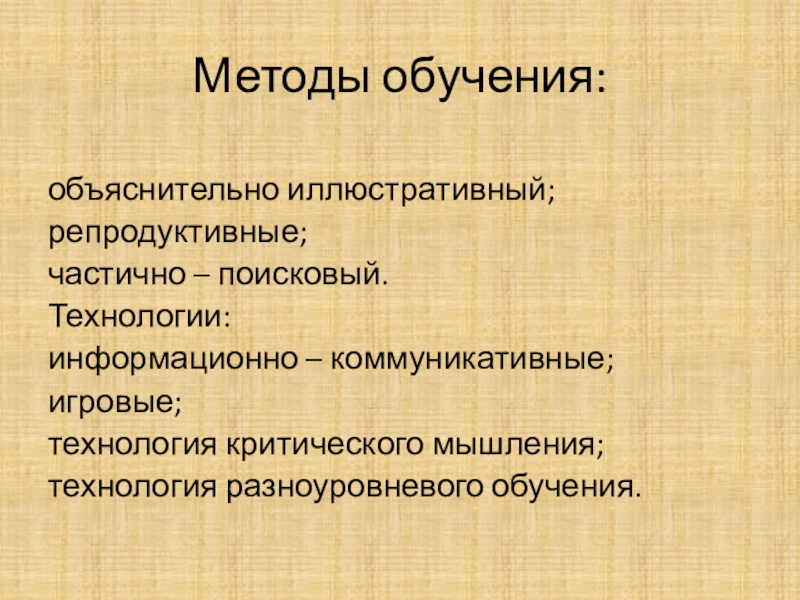 Методы обучения: объяснительно - иллюстративный, репродуктивный