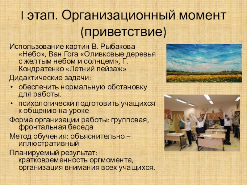 Использование картин В. Рыбакова «Небо», Ван Гога