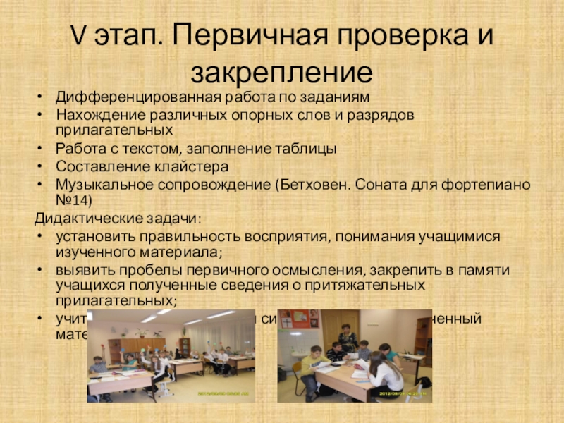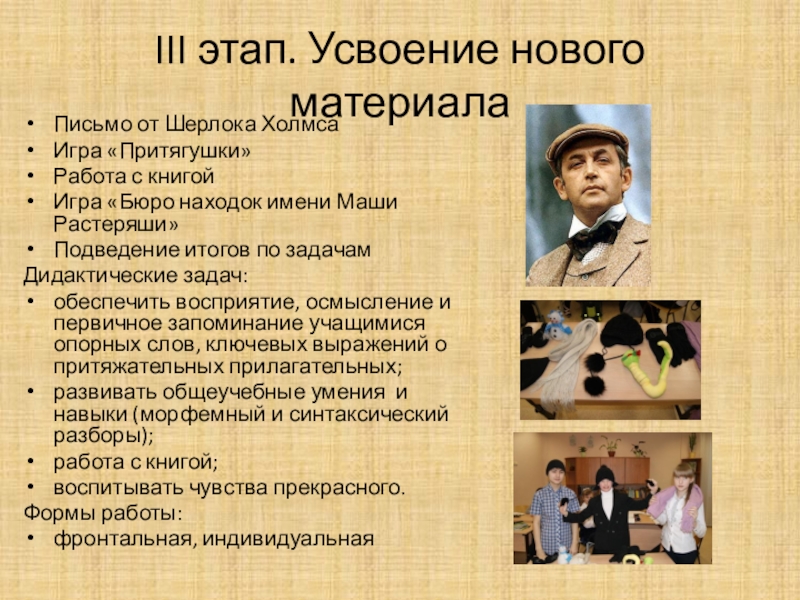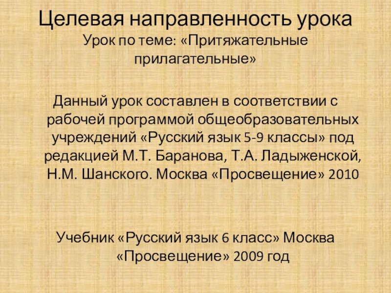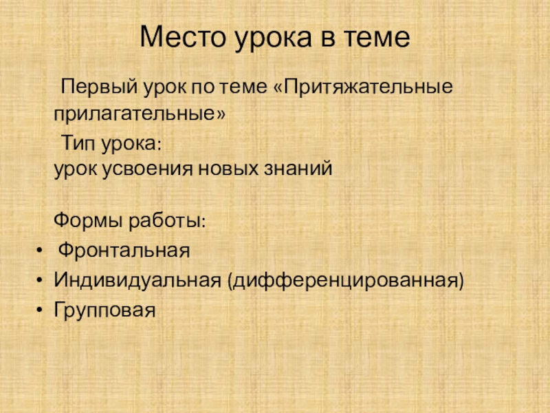 обеспечить восприятие, осмысление и первичное запоминание учащимися опорных слов, ключевых выражений о притяжательных прилагательных;