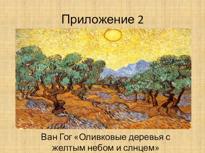 Ван Гог «Оливковые деревья с желтым небом и слнцем»