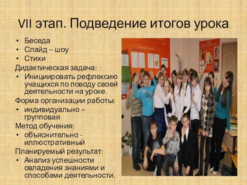 Организация эффективной взаимосвязи деятельности учителя и учащихся по достижению цели.