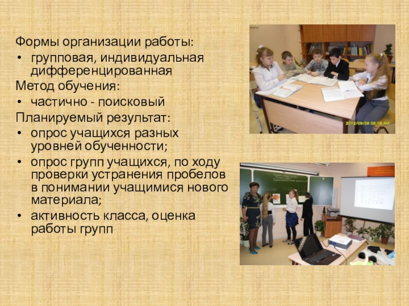 опрос групп учащихся, по ходу проверки устранения пробелов в понимании учащимися нового материала;