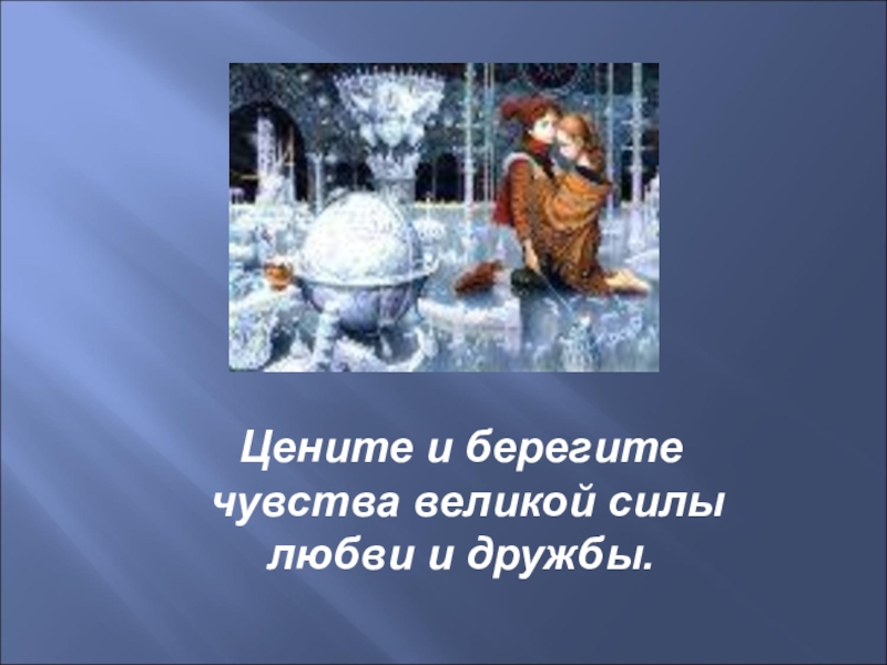 Слайд 50Цените и берегите чувства великой силы любви и дружбы.