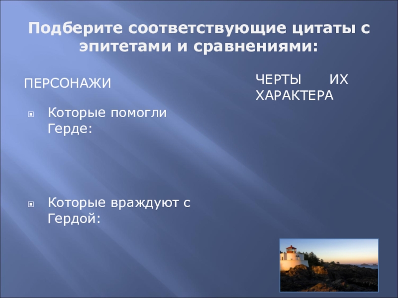 Слайд 45Подберите соответствующие цитаты с эпитетами и сравнениями: