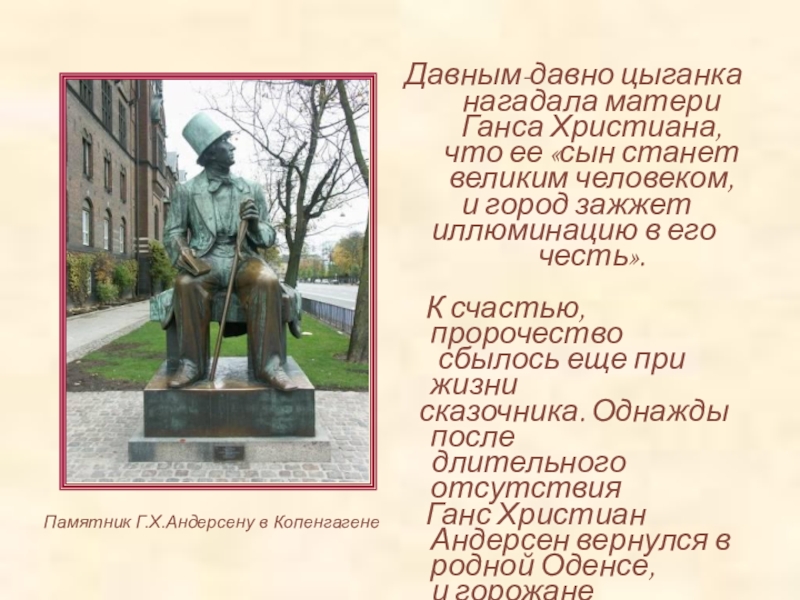 Слайд 18Давным-давно цыганка нагадала матери Ганса Христиана, что ее «сын станет великим