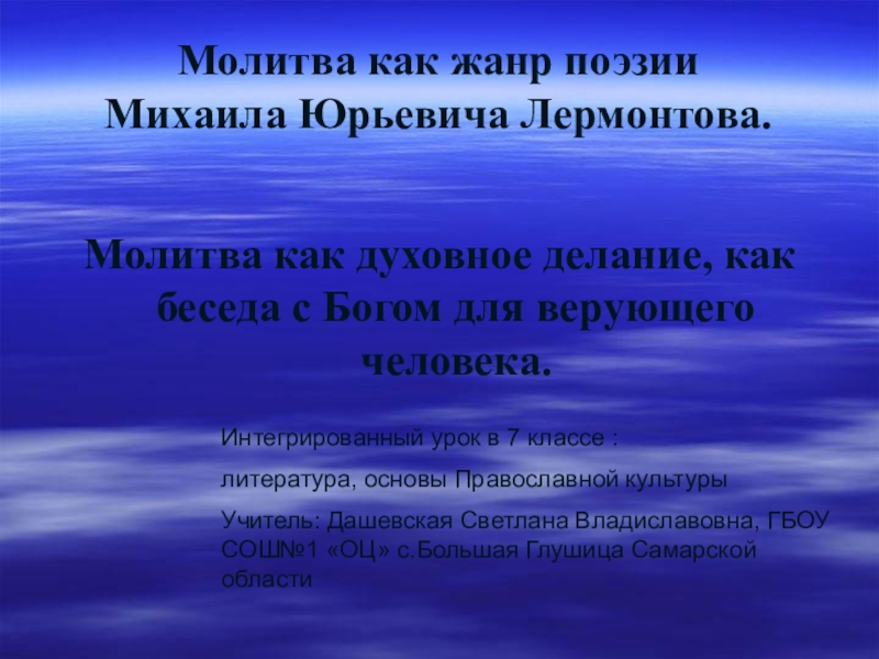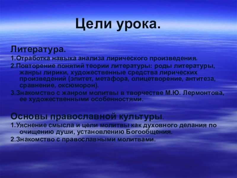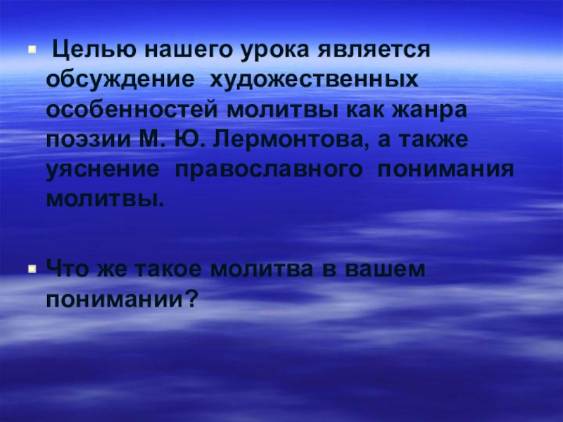 поэзии М. Ю. Лермонтова, а также уяснение православного понимания молитвы.