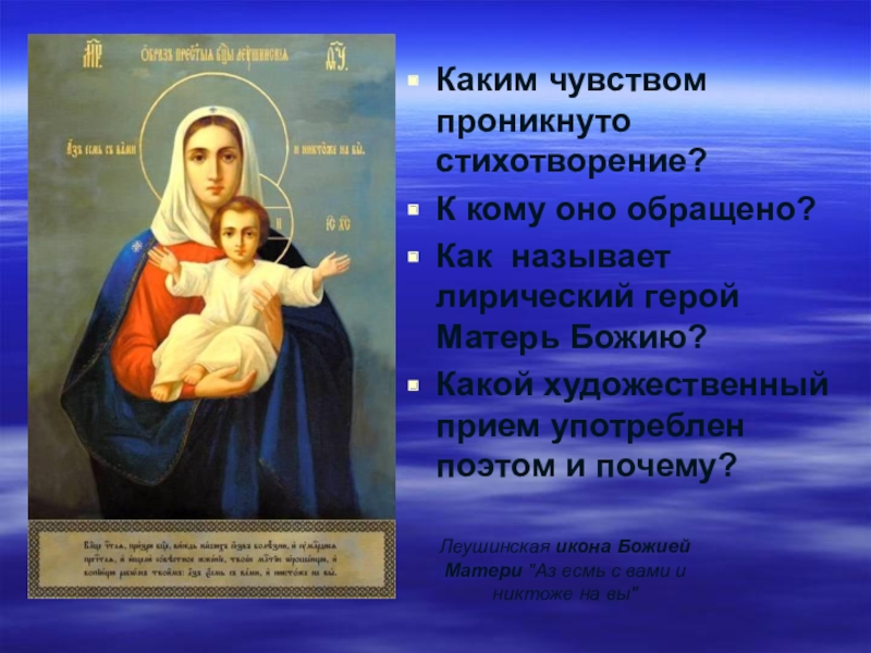 Леушинская икона Божией Матери "Аз есмь с вами и никтоже на вы"