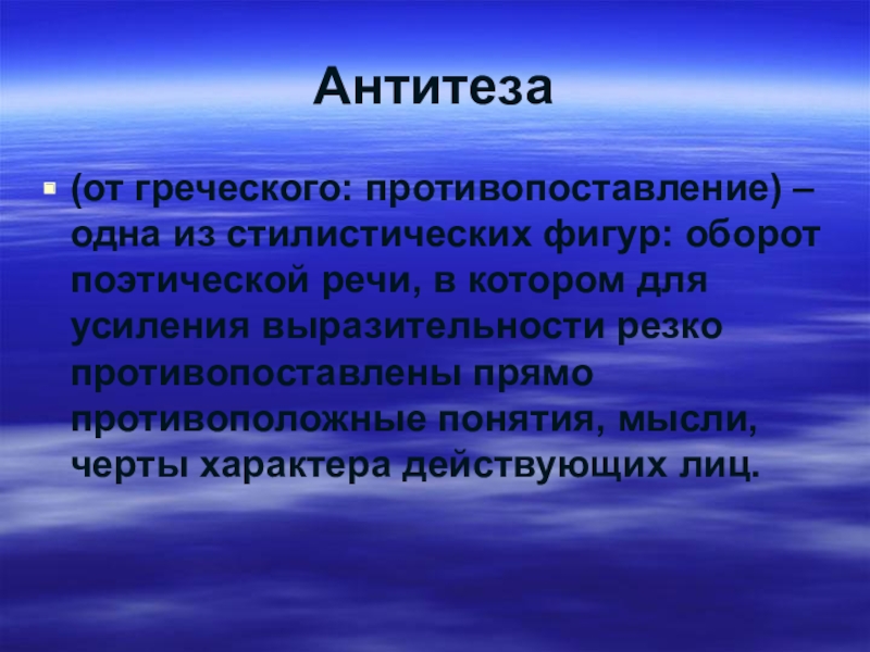 (от греческого: противопоставление) –одна из стилистических фигур: оборот поэтической речи, в