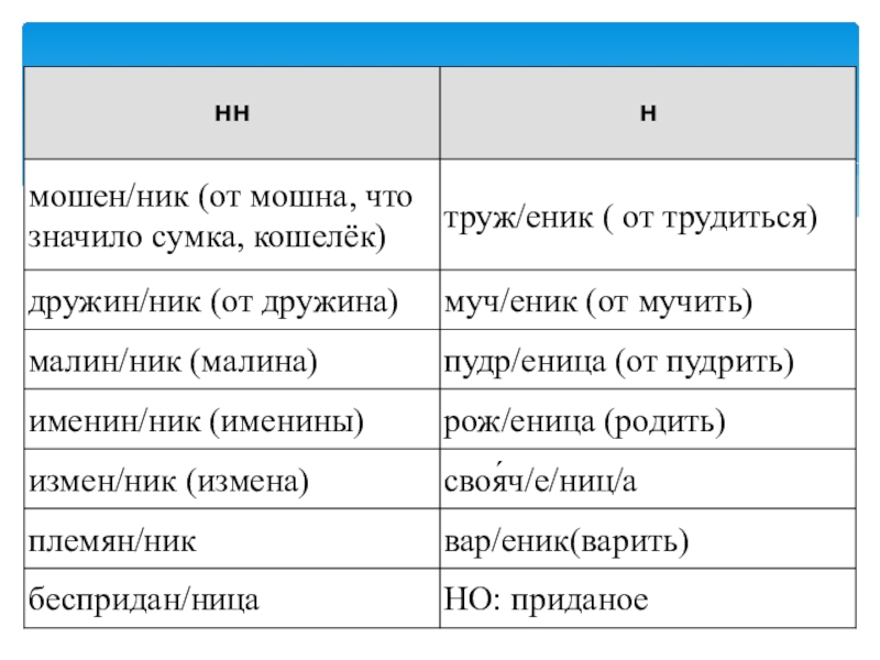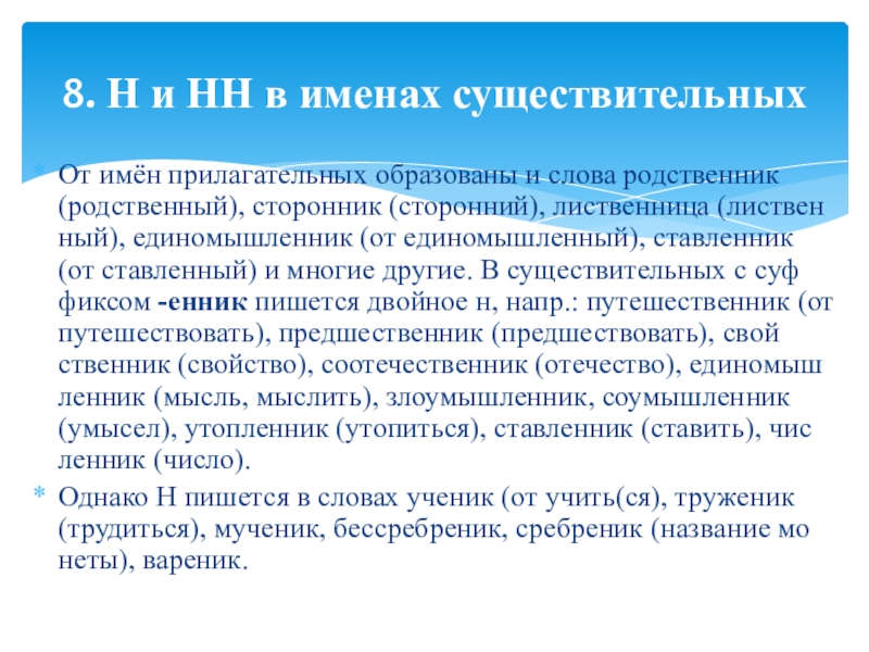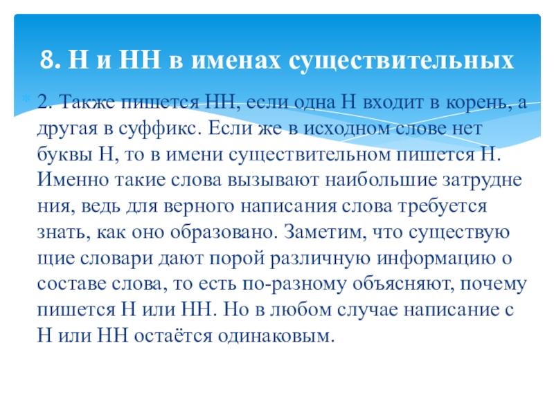 8. Н и НН в именах существительных