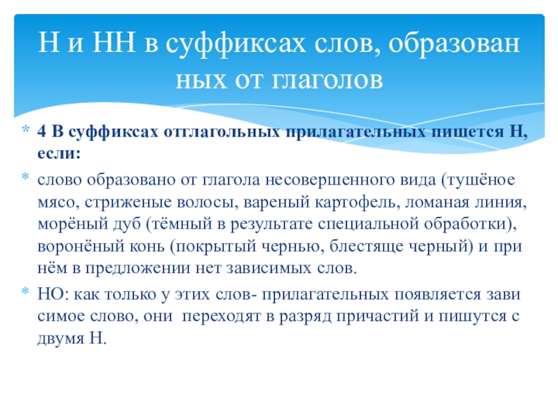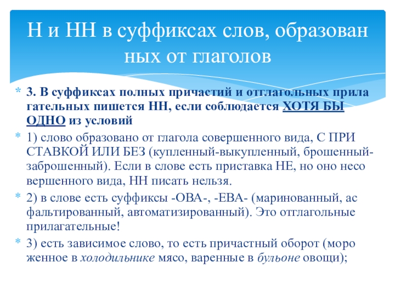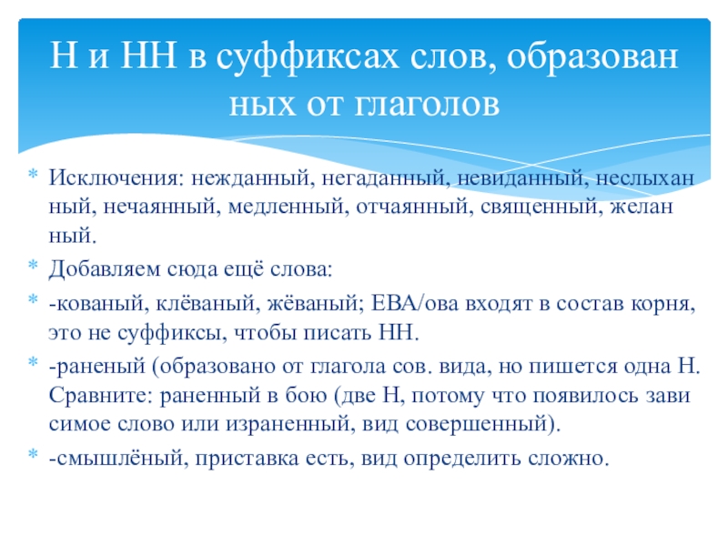 Н и НН в суффиксах слов, образованных от глаголов