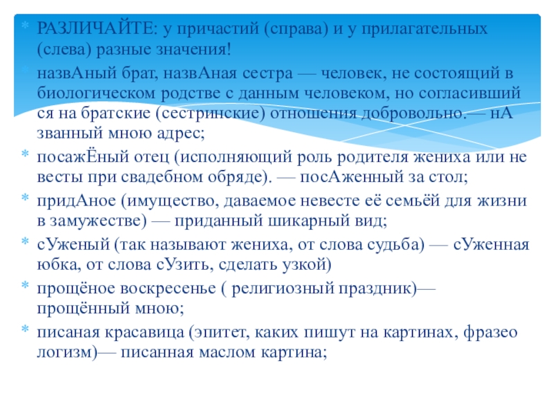 РАЗЛИЧАЙТЕ краткие прилагательные и причастия: