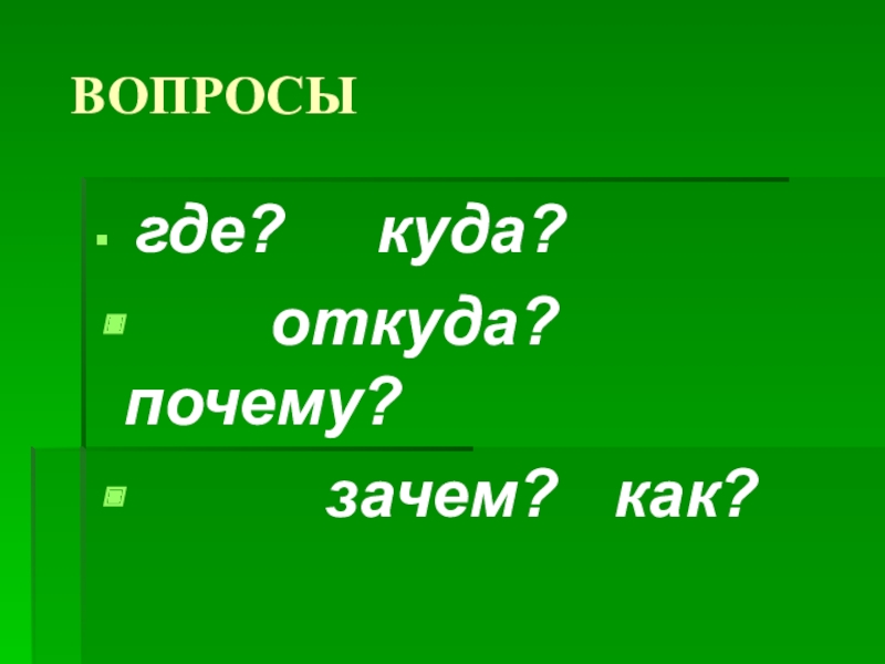 ВОПРОСЫ где?   куда?    откуда?  почему?