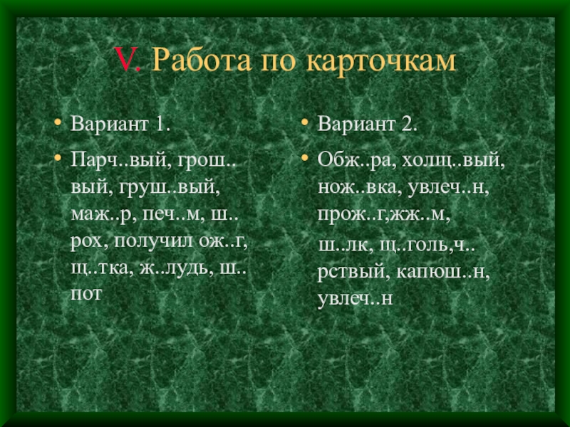 Обж..ра, холщ..вый, нож..вка, увлеч..н, прож..г,жж..м,