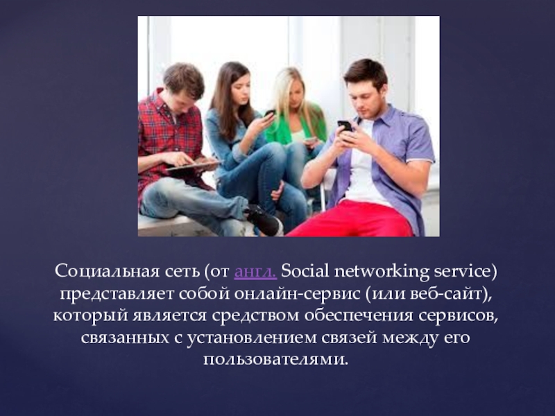 Слайд 2«Социальной сетью» называют услугу, помогающую людям поддерживать связь с друзьями и