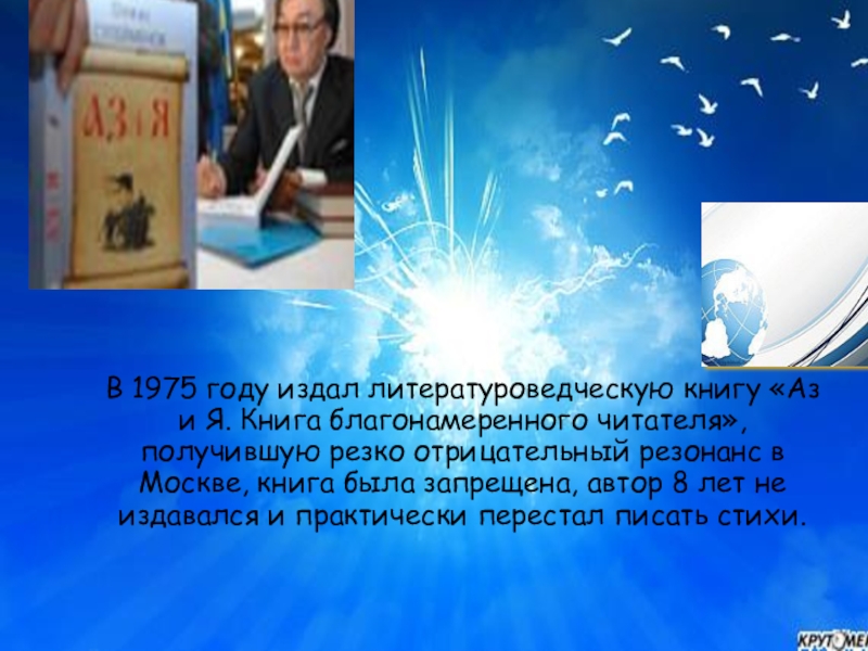Слайд 7В 1975 году издал литературоведческую книгу «Аз и Я. Книга благонамеренного
