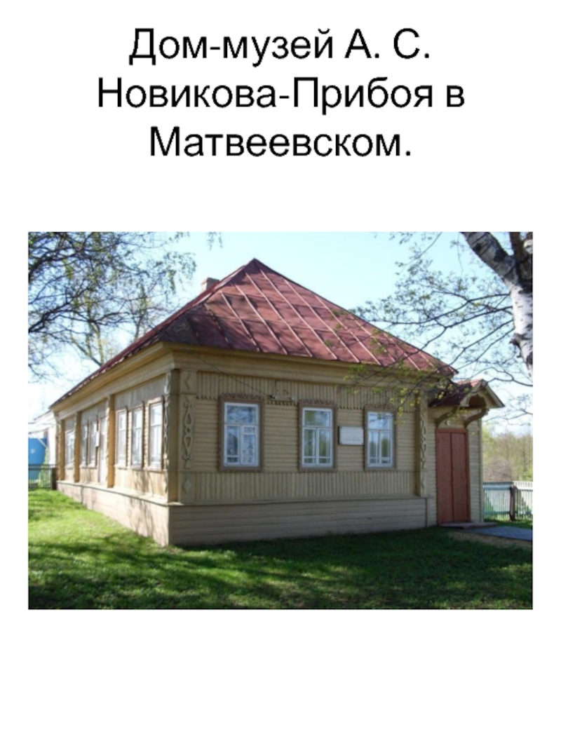 Слайд 2Дом-музей А. С. Новикова-Прибоя в Матвеевском.