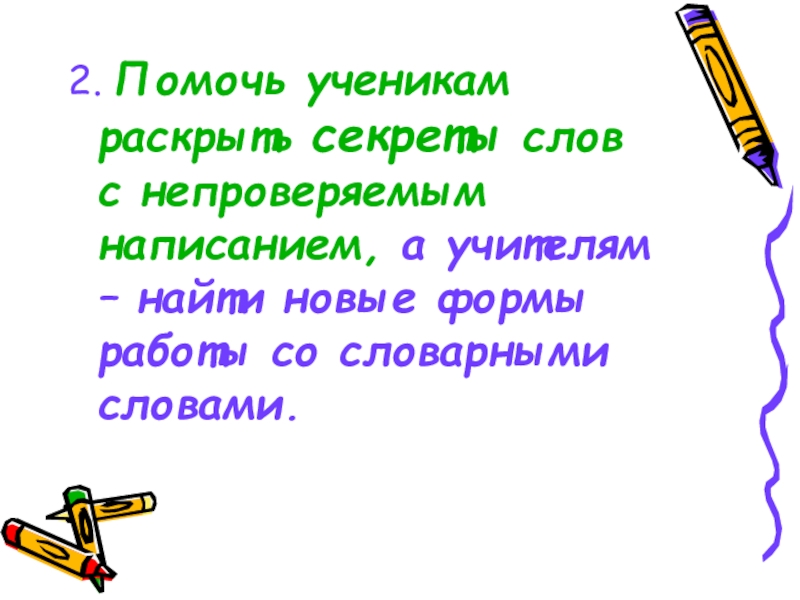 Слайд 32. Помочь ученикам раскрыть секреты слов с непроверяемым написанием, а учителям