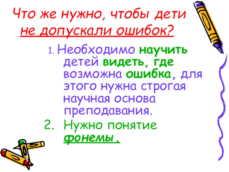 Слайд 4 Что же нужно, чтобы дети не допускали ошибок?