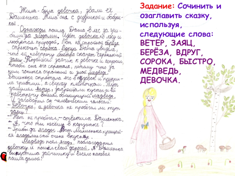Задание: Сочинить и озаглавить сказку, используя, следующие слова: ВЕТЕР, ЗАЯЦ, БЕРЁЗА,