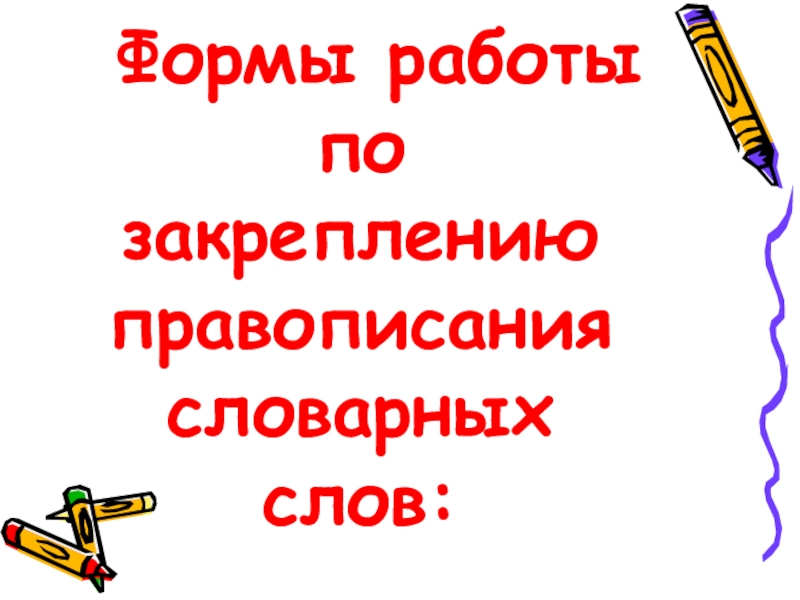 Слайд 9 Формы работы по закреплению правописания словарных слов: