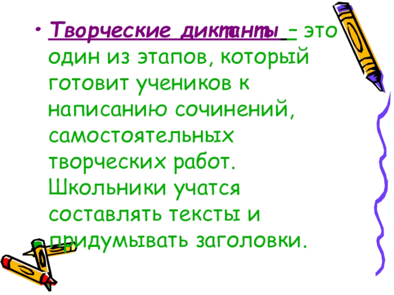 Слайд 15Творческие диктанты – это один из этапов, который готовит учеников к