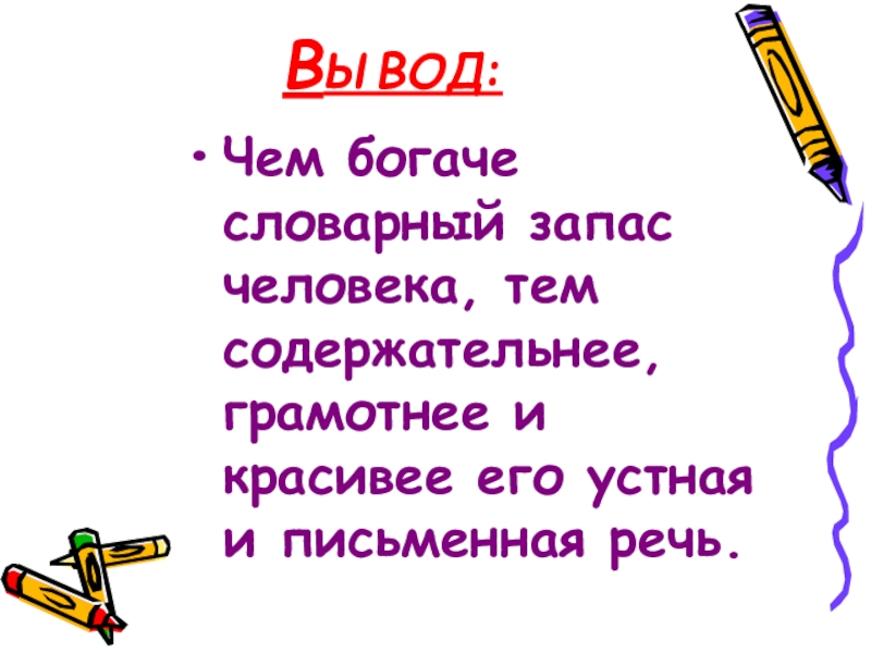 Чем богаче словарный запас человека, тем содержательнее, грамотнее и красивее его
