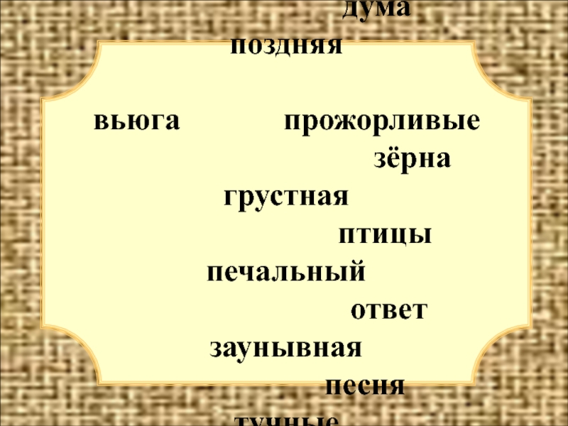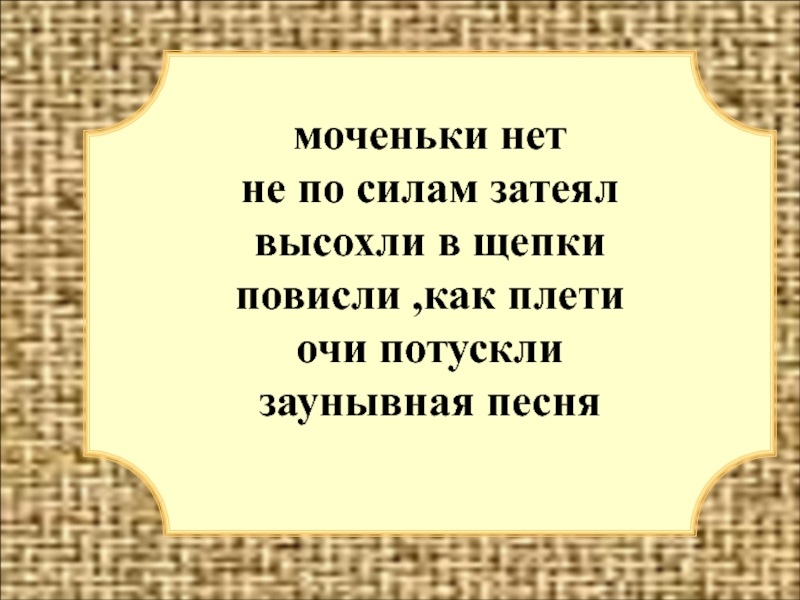 моченьки нетне по силам затеялвысохли в щепкиповисли ,как плетиочи потусклизаунывная песня