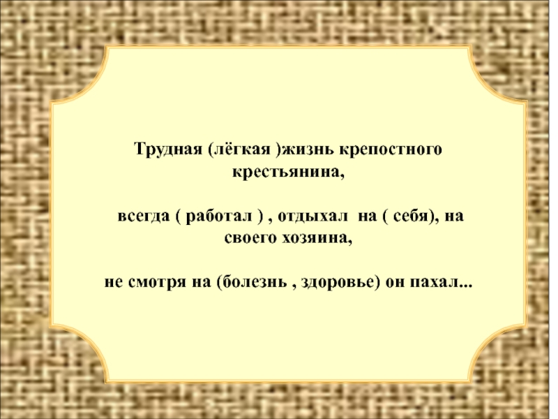 Трудная (лёгкая )жизнь крепостного крестьянина,