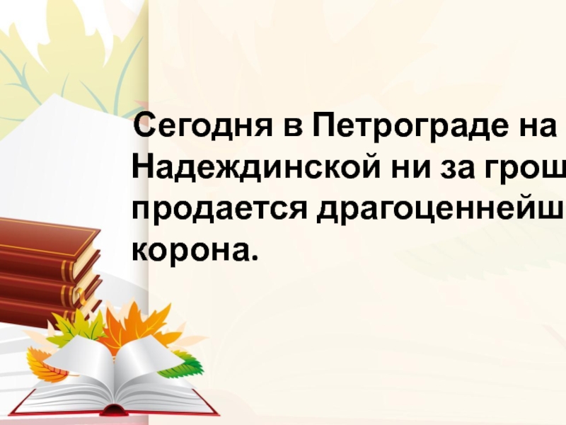 Сегодня в Петрограде на Надеждинской ни за грош продается