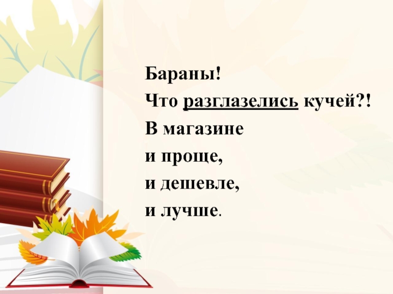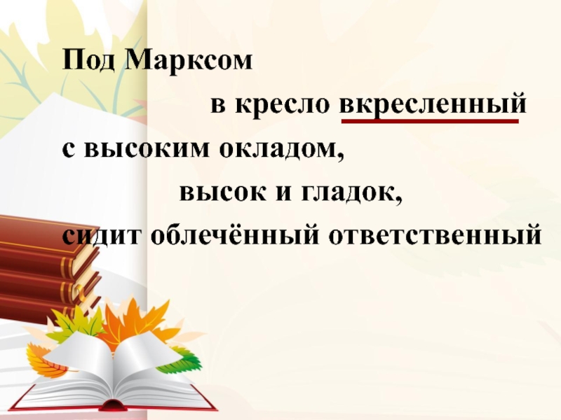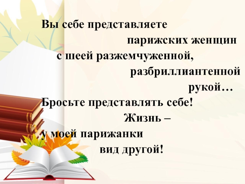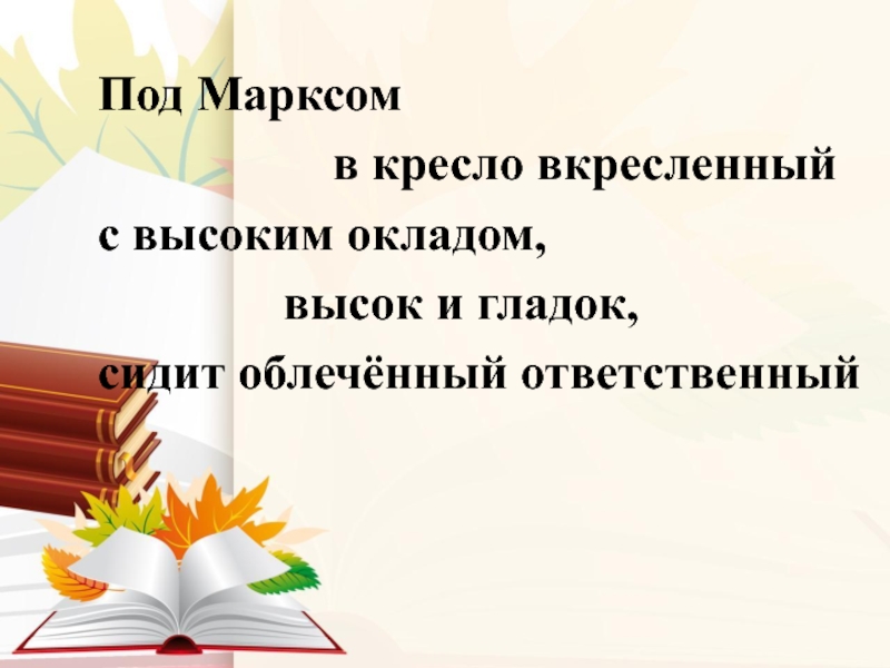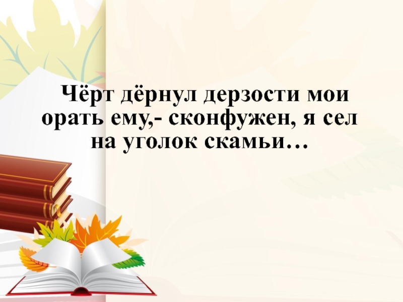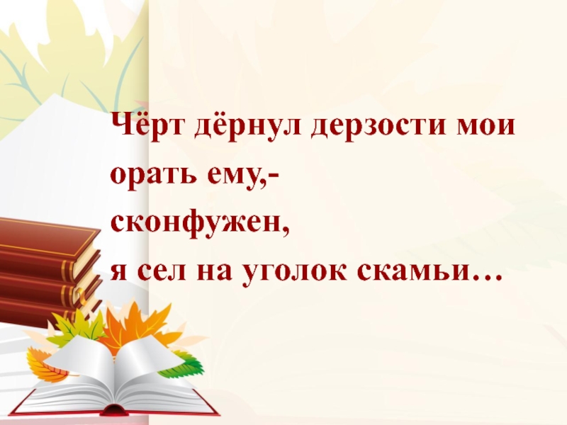 Слайд 9 Чёрт дёрнул дерзости мои орать ему,- сконфужен, я сел на