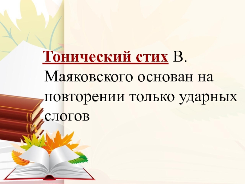 Слайд 17 Тонический стих В.Маяковского основан на повторении только ударных слогов