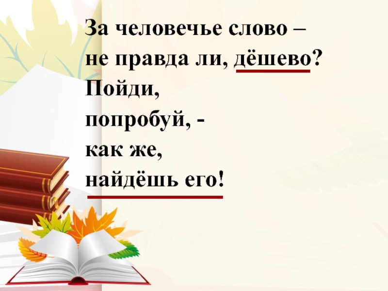 Слайд 24За человечье слово –