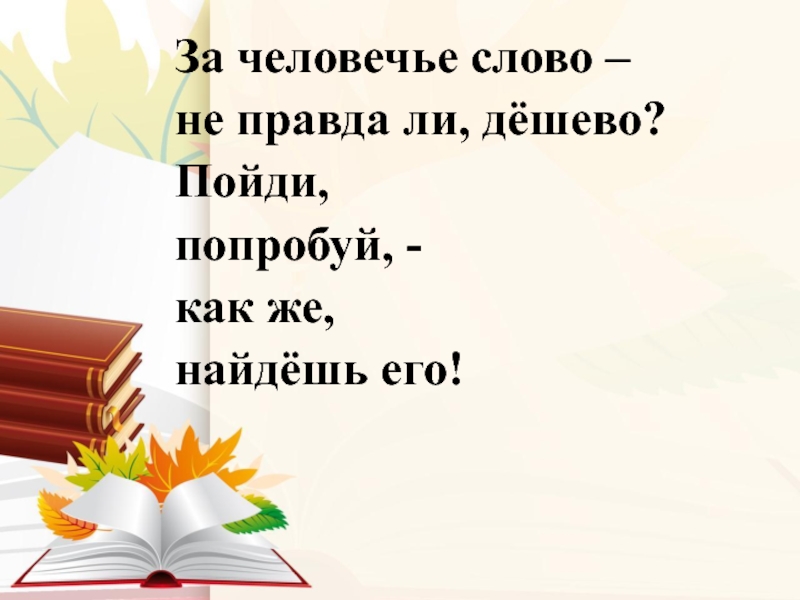 Слайд 23За человечье слово –