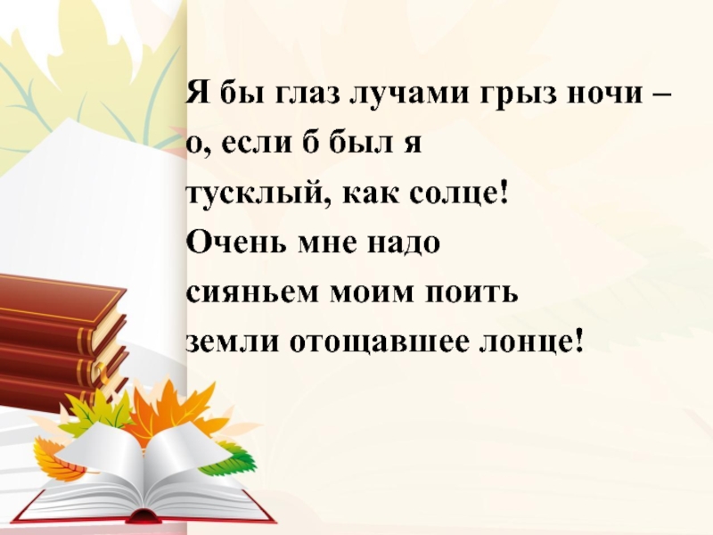 Слайд 83Я бы глаз лучами грыз ночи –