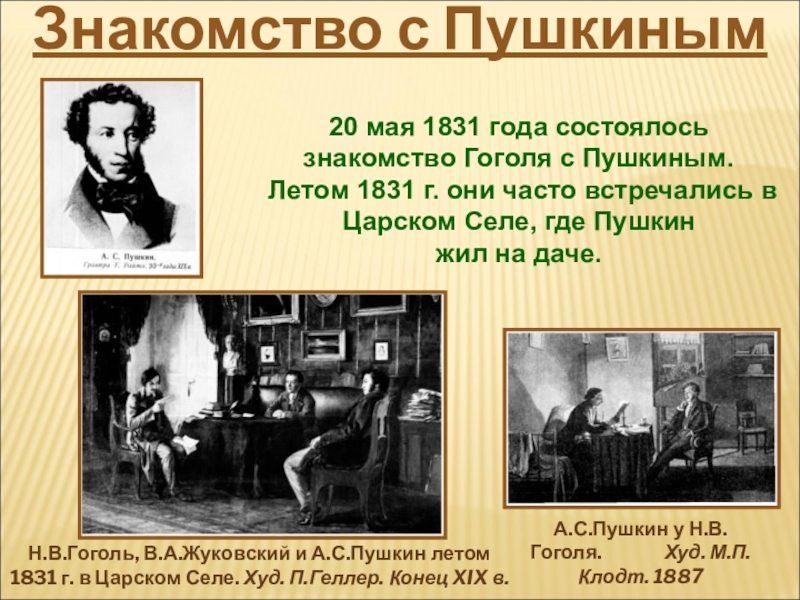 А.С.Пушкин у Н.В.Гоголя. Худ. М.П.Клодт. 1887