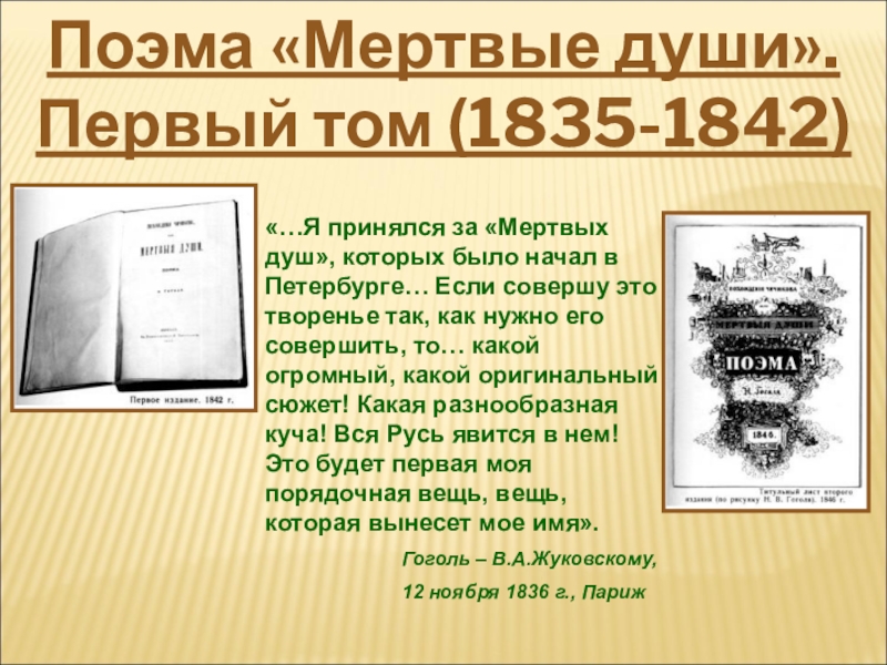 Поэма «Мертвые души». Первый том (1835-1842)
