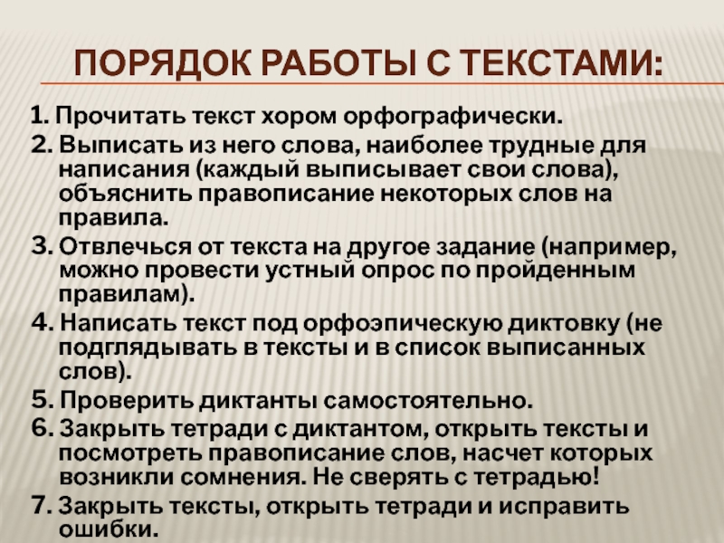 Слайд 8Порядок работы с текстами: