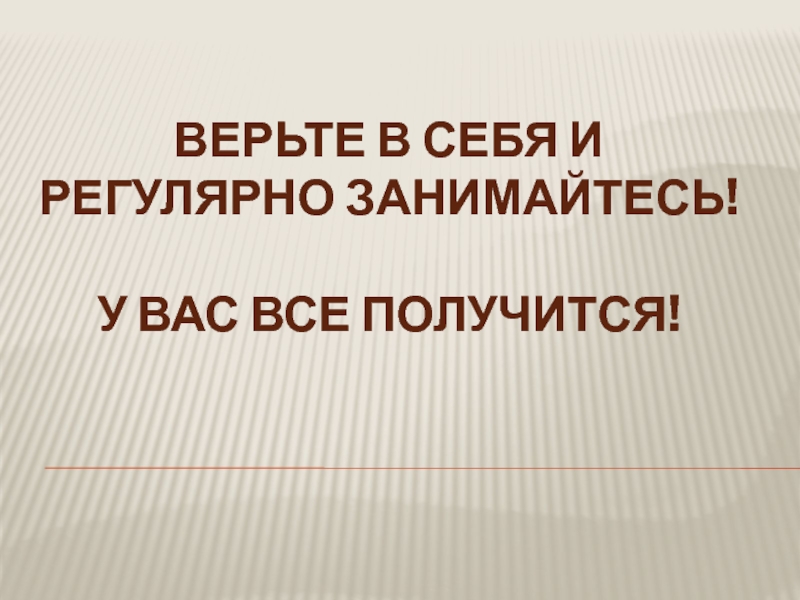 Слайд 14Верьте в себя и регулярно занимайтесь!