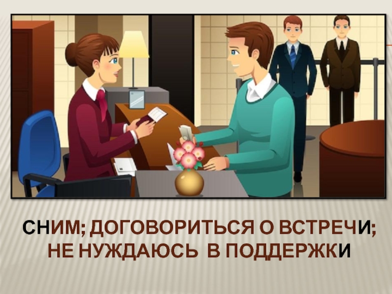 Слайд 2Сним; договориться о встречи; не нуждаюсь в поддержки